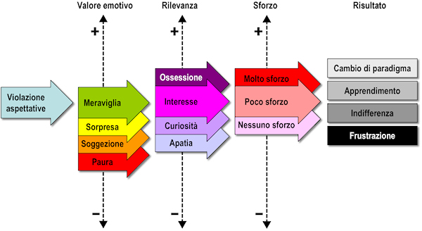 Trascorso l’attimo di stupore, è spontaneo che la nostra mente si attivi per “risolvere” razionalmente la violazione: tale attivazione dà il via a un percorso di riflessione per cui si dovrà mettere in conto un più o meno grande sforzo intellettuale.