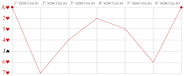 Il grafico può essere tracciato per ciascuna carta, e naturalmente il più interessante è quello relativo al fante di picche, che è completamente piatto: