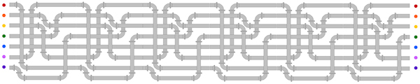 Intuitivamente lo si può visualizzare come una serie di 7 tubi attraversati da sinistra verso destra da altrettante palline: a eccezione della quinta, dopo il passaggio le palline si trovano in posizione diversa rispetto a prima.