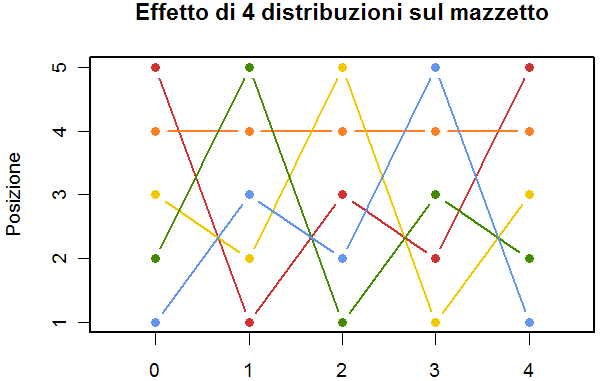 main=paste(“Effetto di”,DISTRIBUZIONI,“distribuzioni sul mazzetto”)