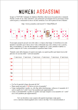 • Cosa cambia se, al termine della distribuzione dei due mazzetti, si mette quello di 4 carte sull’altro? Con questo nuovo miscuglio esiste ancora una carta che non si sposta mai? Qual è il suo grafico? Ha una periodicità?