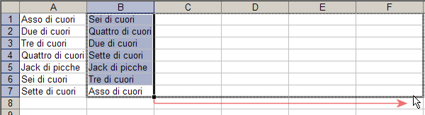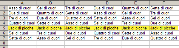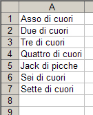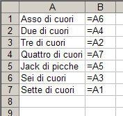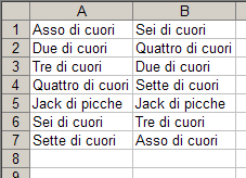 Premi di nuovo Ctrl+Maiuscolo+8 per tornare alla visualizzazione normale, e nella colonna B le carte compariranno nell’ordine in cui si troverebbero dopo un miscuglio.
